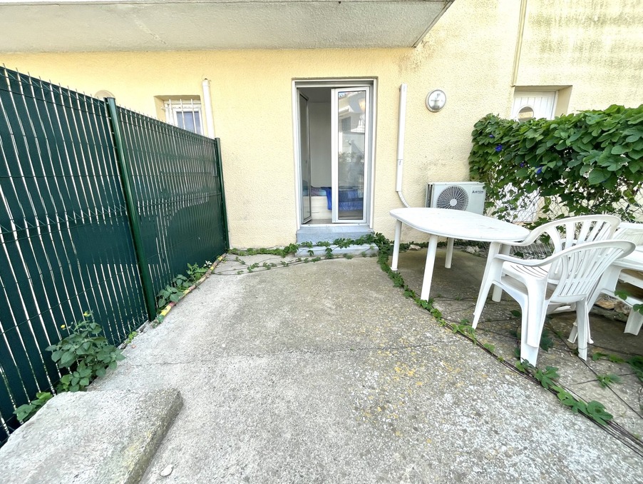 QUARTIER PLAGE / PLACE SAINT CHARLES: Loué meublé à l'année: Appartement T2 en RDC traversant de 25m² hab. avec sa place de parking privée, entrée desservant séjour / cuisine et balcon, salle d'eau / wc, chambre de 9m² climatisée avec placard et sa terrasse de 18m², libre au 01/11, loyer 450 + 35 € de charges (ordures ménagères et consommation d'eau)
