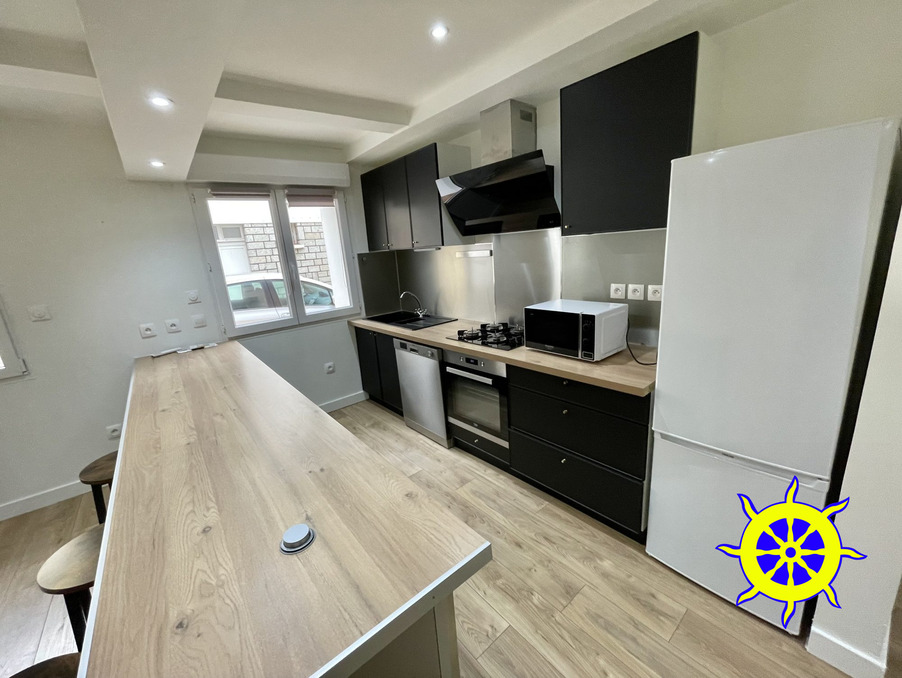 RUE VOLTAIRE: proche commerces, eglise et toutes commodités, APPARTEMENT T3 en RDC entierement rénové, traversant avec 2 entrées séparées, entrée desservant séjour / cuisine aménagée, cellier, salle d'eau / wc, puis 2 chambres séparées avec placard, double vitrage, climatisation réversible, libre de suite, loyer 770 + 15 € de charges (ordures ménageres)