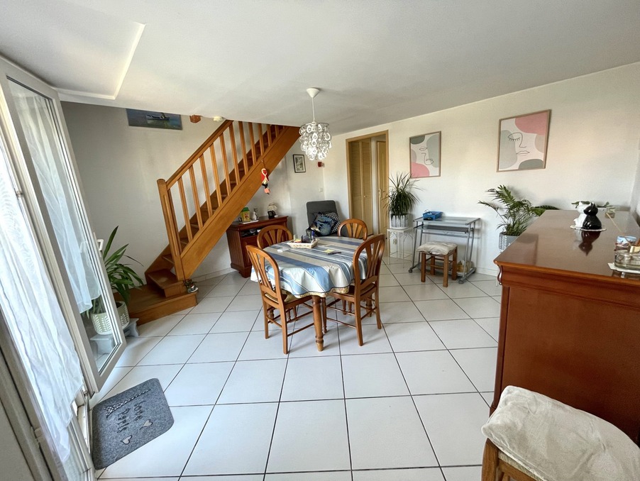 QUARTIER 1ER LAC: pavillon en excellent état de type T3 MEZZANINE, avec jardin et terrasse sur 3 faces, entrée avec placard, cuisine aménagée, buanderie et petit garage pour moto , séjour, 1 chambre au RDC avec placard, wc séparé et salle d'eau, A l'étage: grande mezzanine, 2eme chambre avec placard, libre au 01/01/2026 / loyer 900 + 30 € de charges (ordures ménagères et copropriété)