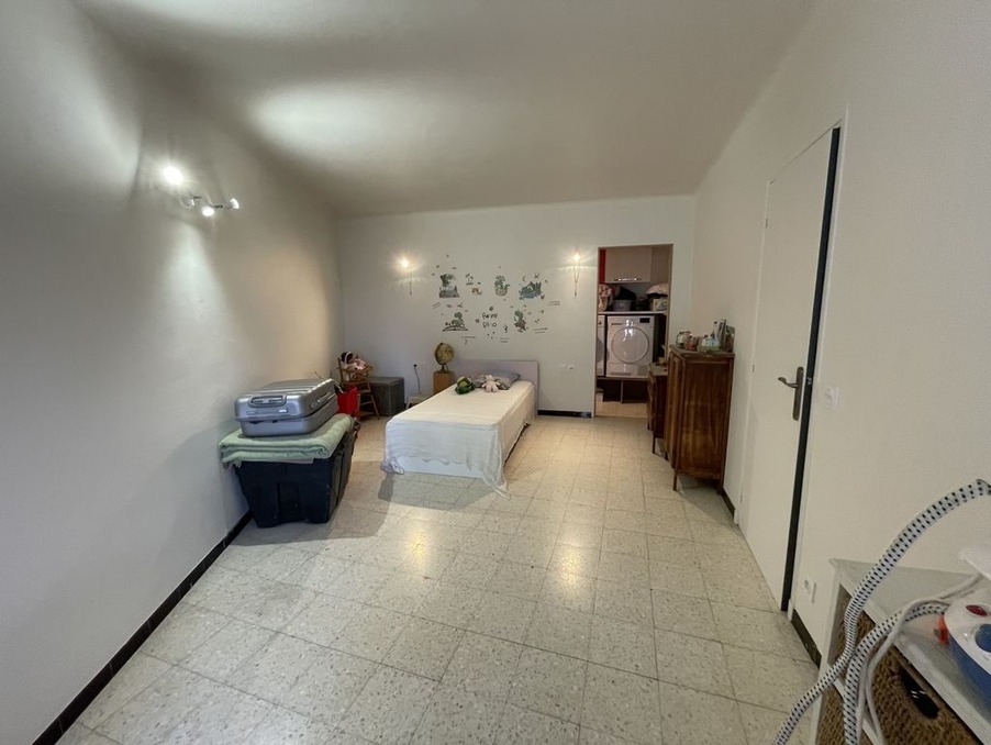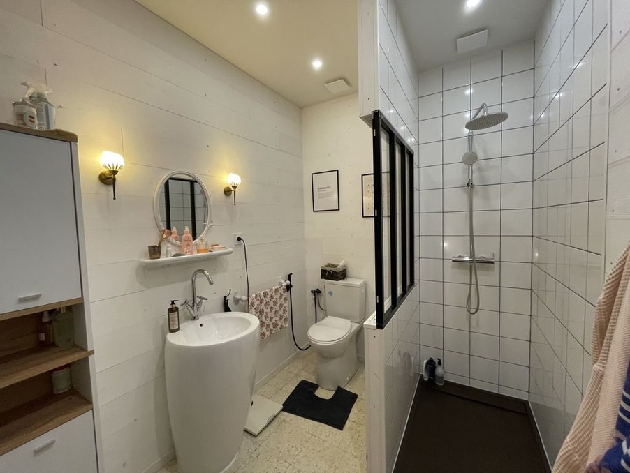 Au RDC : une pièce à vivre / cuisine équipée de 41m²-, une buanderie de 18 m² avec accès motos et une première Salle d'eau/WC