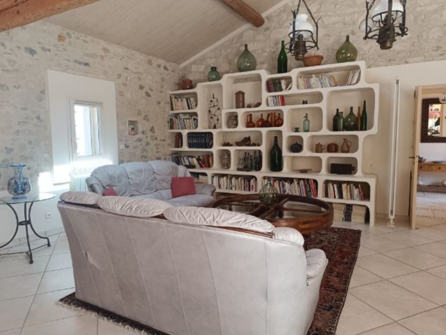 Dans le village: Atypique bergerie entièrement rénovée de plain pied en pierres apparentes d'une superficie de 191 m² sur une parcelle de 1115 m². L'entrée nous offre un accès à un bel espace de vie composé d'un ensemble séjour salon avec poêle à bois cuisine équipée et arrière cuisine, puis un espace bureau et un atelier. Belle véranda avec une luminosité exceptionnelle donnant directement sur la partie jardin. Le côté nuit comprend une chambre avec salle de bains, wc indépendant, cellier puis une autre chambre avec mezzanine et salle d'eau et wc. Un accès au grenier.Le plus : 2 dépendances avec cuisine équipée, cheminée traditionnelle et mezzanine dont l'une avec une cuisine extérieur d'une superficie de 35 m² à aménager.